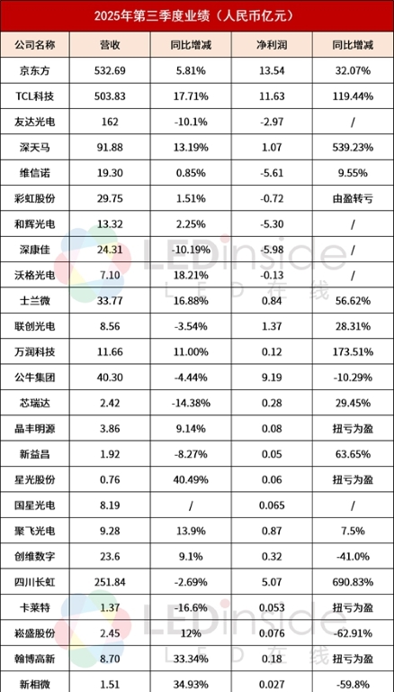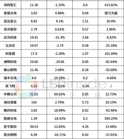 本周,共有72家LED相关企业发布三季度业绩,其中28家企业实现净利润增长,10家企业实现扭亏为盈。