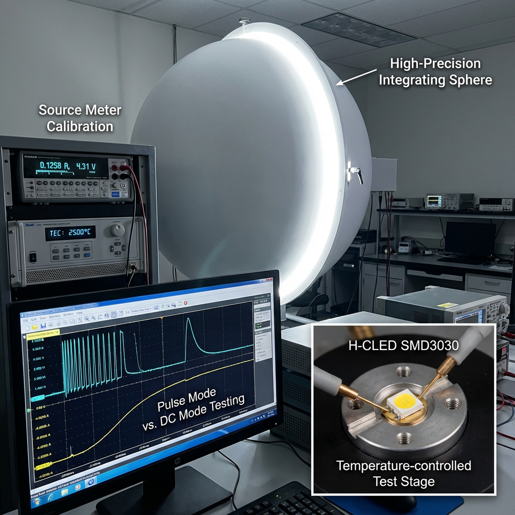 我们需要专业的积分球来收集所有光线,配合高精度的源表(Source Meter)进行纳秒级的脉冲扫描,同时还要有温控台(TEC)把LED强制固定在特定温度。只有在恒彩电子这样拥有独立实验室和高精密全自动生产设备的企业,才能产出可信赖的测试数据,确保每一颗出厂的SMD灯珠都符合标准。