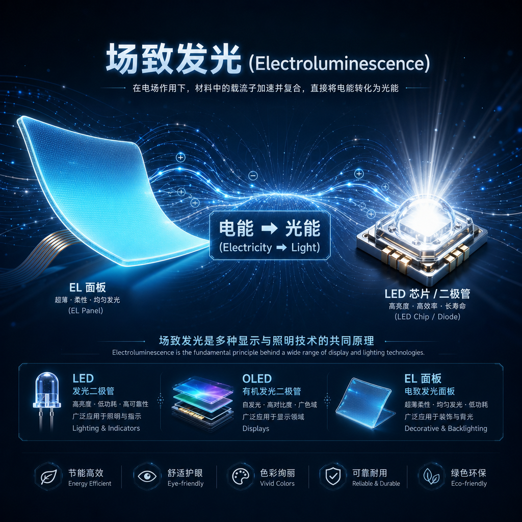 | 狭义场致发光 | 高电场激发发光 | ACEL、粉体 EL、薄膜 EL | 工程与采购语境 |